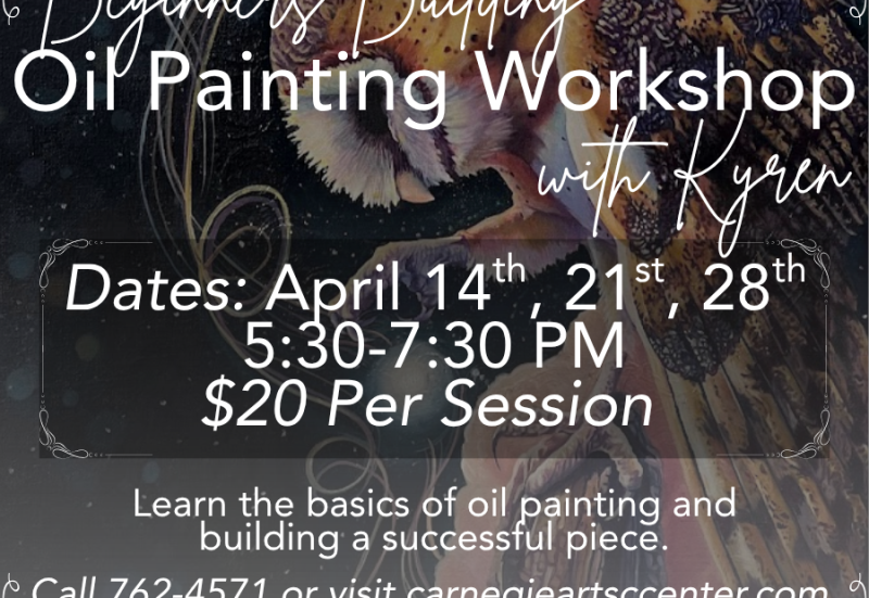 The Carnegie Arts Center has you covered! Under the instruction of our director Kyren, participants will get an in depth introduction to the oil painting as a whole. No prior experience is needed as this is a beginner friendly class. Participants will learn better brush coordination, paint mixing, paint application, and building layers on the canvas.
