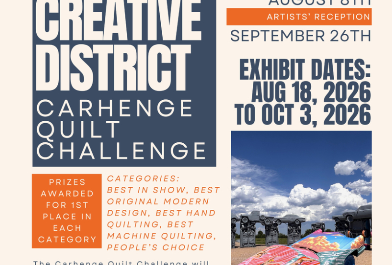 The Carnegie Arts Center and the Alliance Creative District present a collaborative call for textile artists. Following the inaugural 2025 Carhenge Mural Festival—where eight internationally recognized muralists created work directly on Carhenge cars—the Quilt Challenge invites artists working in fiber and textile media to explore what Carhenge inspires across disciplines.