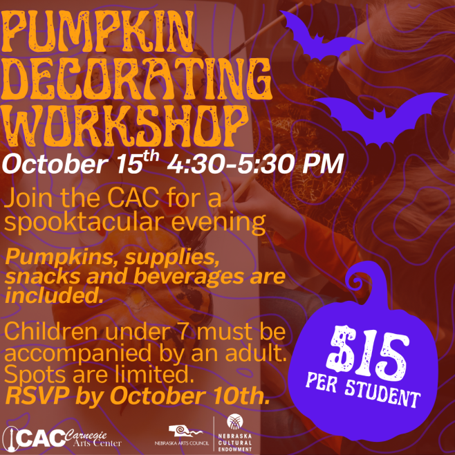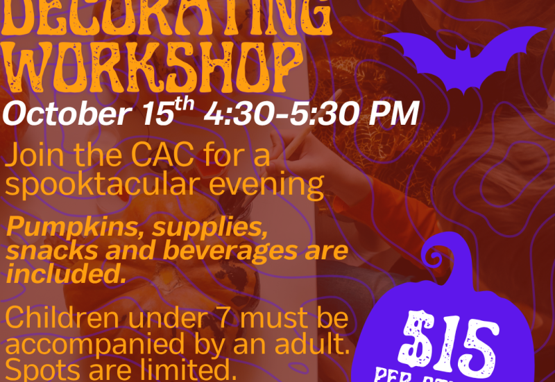 Join the CAC on October 15th from 4:30-5:30 for a spooktacular evening of pumpkin decorating!