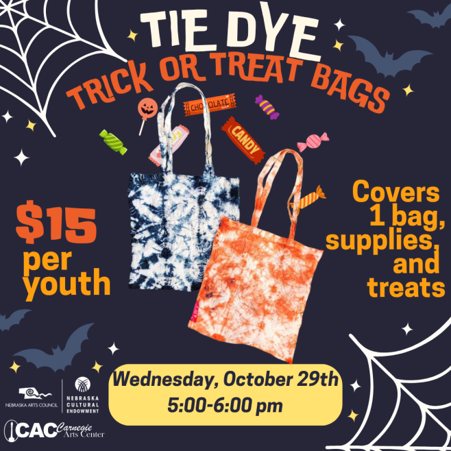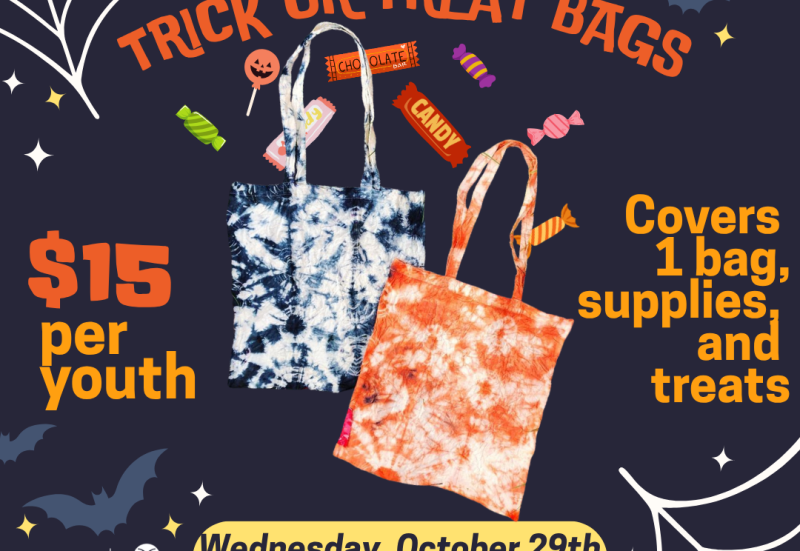 The CAC is excited to offer a unique Halloween workshop this year where participants will tie-dye their very own trick or treat bags!